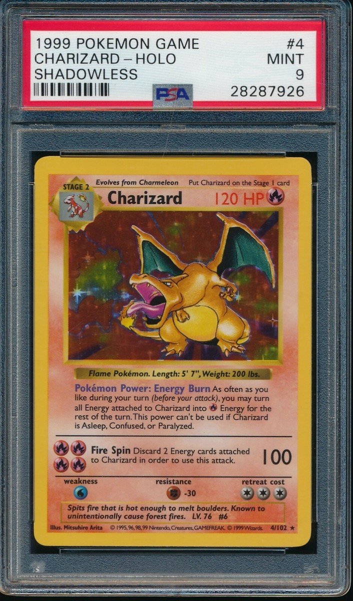 Authentic PSA graded Charizard holo card with near-mint condition rating. A premium collectible for Pokémon enthusiasts.